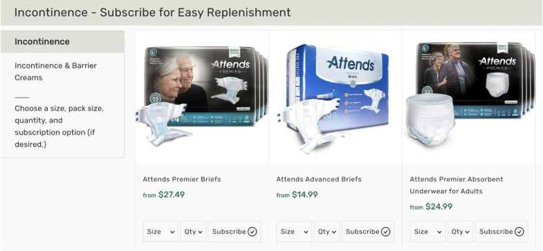 Easy reorder subscriptions for resident incontinence products. No more emergency runs to the big box store. Sign up once and have the peace of mind that your loved one has everything they need!